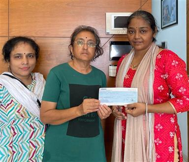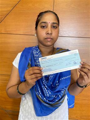 Cheque given to Saroj Jaiswal for her daughters education. Project . . .