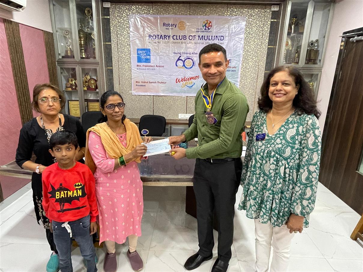 Rtn Dr Kirti Bothra gave cheque of 1 lakh fifty thousand to 11 canc. . .